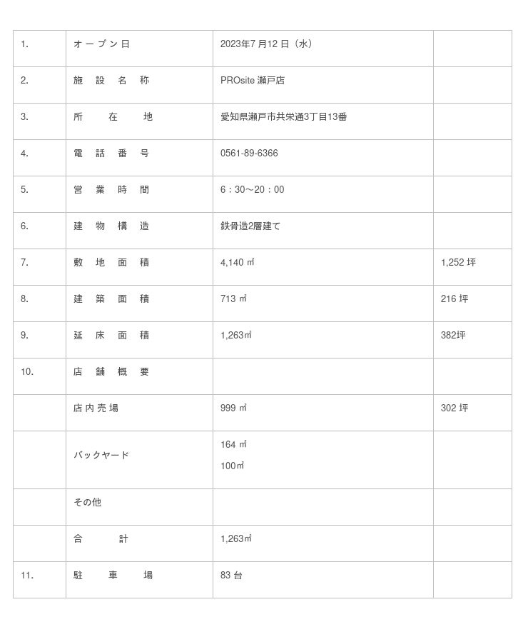 <PROsite 瀬戸店の概要>