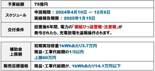2024年度(令和6年度)のDR補助金の販売目標価格は、蓄電容量に対して「14.1万円/kWh」と、昨年の販売目標価格より「1.4万円/kWh」も減額されました。
