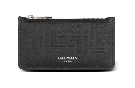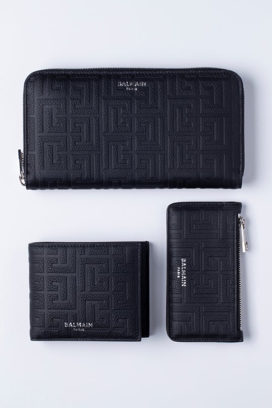 PB Labyrintheモノグラムが施されたグレインレザー製のアクセサリーは、洗練されたエレガンスを体現しています。それぞれBALMAIN Parisのシルバートーンのエンボスロゴが施され、アイコニックなモノグラムが立体的に表現されています。
