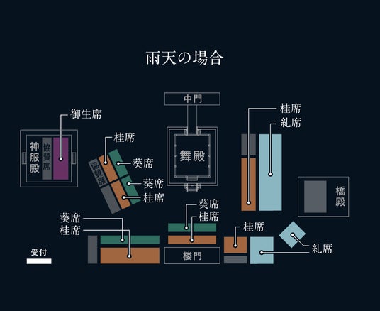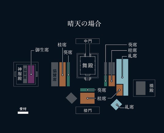 ※御生席、葵席、桂席は全席指定席、糺席は自由席エリアでのご観劇となります。