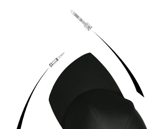 ロケットの軌跡からインスピレーションを受け「宇宙で働く人・宇宙を目指す人・宇宙に憧れる人の皆が繋がる帽子」というコンセプトのもとデザインされた、キャップ T+ ( ティープラス)。