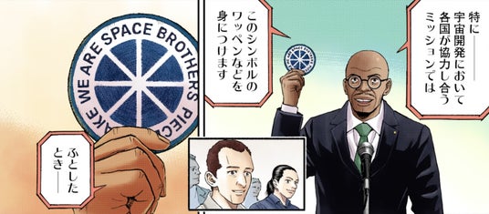 シンボルマークは、宇宙兄弟作中で、「宇宙開発における世界共通の合言葉」として作られれたもの。