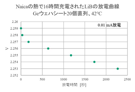 熱エネルギーによるリチウムイオン電池への充電を確認