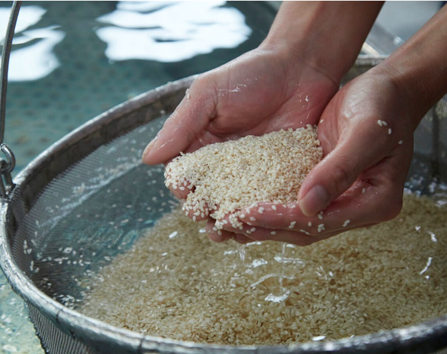 胡麻は皮が剥かれた状態で輸入されることが多いですが、アダチ食品では皮付きのまま仕入れ、国内の自社工場にて職人たちが手洗いで表皮を取り除いています。一粒一粒、気の遠くなるような作業ですが、剥きたての胡麻は風味や香りの鮮度が格別。また、指先で感じとった胡麻の状態の微細な違いは、その後の製造工程にも反映されます。