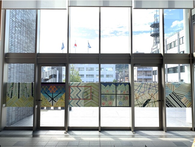 武庫川女子大学と大阪経済大学が共同で、洲本市域学連携の10周年をテーマに、洲本市役所エントランスにmtのマスキングテープを使ってアート展示。洲本市や域学連携の歴史をイメージし、これからの洲本市の発展を応援する企画です。