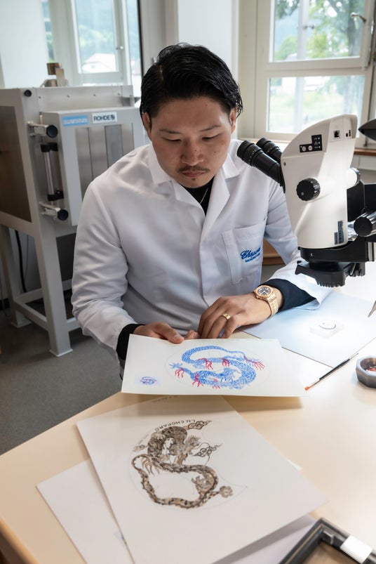 ショイフレ:ショパールは様々な点で唯一無二です。その中でも特筆すべき独自性は、ほぼすべてを自社内で製造できることです。独自のムーブメントがその例です。時計内部も、時計のケースも、ブレスレット、そしてダイヤルまでも、フランス語で「マニュファクチュール」と呼ばれる自社工房があるからです。例えば、このようなダイヤルの場合、最低でも60の工程を経て完成します。もちろん、残るほかの作業も自社で行っています。これこそがまさに「マニュファクチュール」です。そこでは50人以上の職人が、この時計の誕生に携わっているのです。