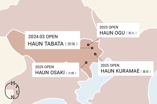HAUN TABATAの共用部設計とデザインを手がけるのは、東京を拠点に活躍するHUNE Architects。続いてオープンするHAUN OSAKIとHAUN KURAMAEは、コペンハーゲンを拠点に活躍するmokと&K architectsが手掛けます。また、HUNE Architectsはその後にオープン予定のHAUN OGUも手掛けています。