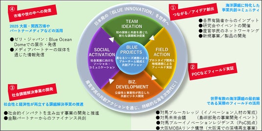 「海」に関わる産官学民金のあらゆるステークホルダーの多面的交流と事業共創を通じ、持続性・実効性ある「海の保全と繁栄」を両立した社会課題解決を目指す事業共創のブルーアクション・プラットフォームです。