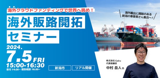 地場産業の活性事業を手掛ける新潟県粟島浦村のスタートアップ、Reterras合同会社(本社:新潟県粟島浦村、代表:本保 輝紀、以下「リテラス」)は、国内市場にとどまらず海外市場へのマーケット拡大を目指す新潟県内の事業者を対象としたセミナーを開催いたします。ゲストに株式会社Gaku 代表取締役 中村岳人氏を迎え、海外市場へチャレンジすることの必要性、販路開拓方法について語っていただきます。