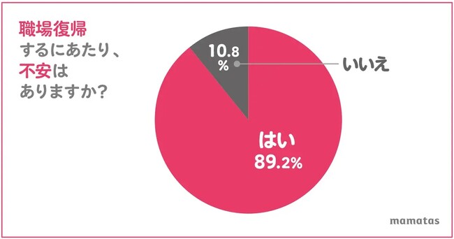 一方で、ママ向け動画メディア「mamatas」が実施したInstagramストーリーを利用したインターネット調査によると、回答者の約9割が職場復帰に不安を感じていることが分かりました。