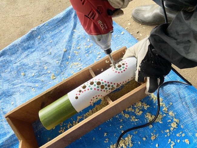 内容:公園で育った立派な真竹にドリルで穴をあけて模様を描き、竹灯ろうを作ります。模様は4種類から選べます♪