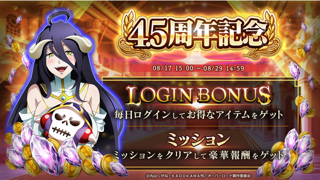 2.4.5周年記念ログインボーナス、4.5周年記念ミッション