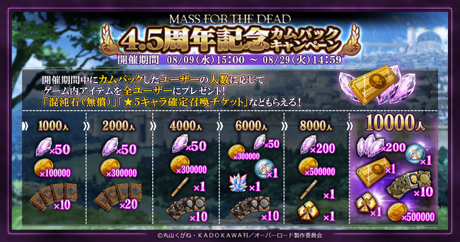 4.5周年を記念して期間中にログインされたユーザー様全員へ、無償混沌石500個と