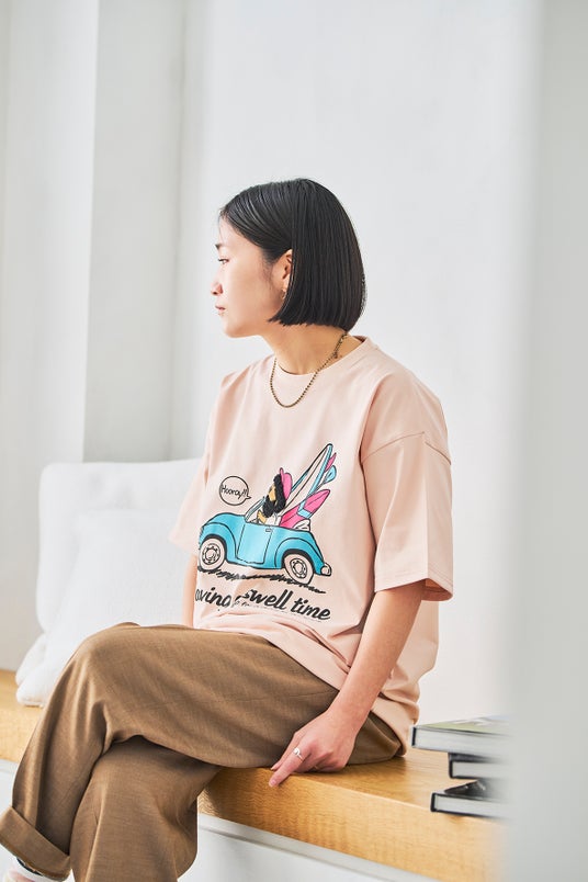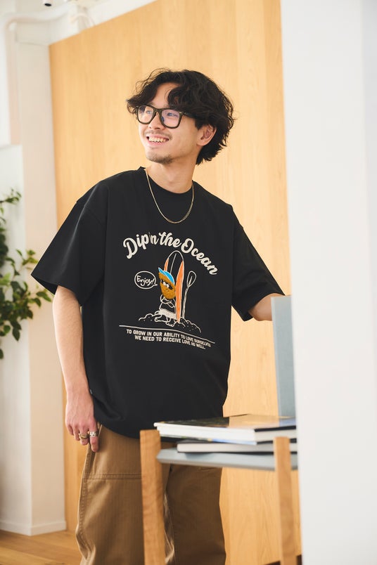 遊び心のあるデザインで、夏のカジュアルコーディネートにぴったりの一枚です。