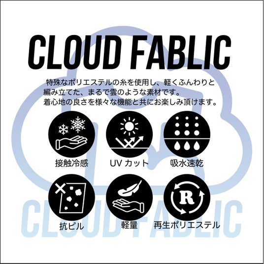 また、デザインに合わせて快適な着心地を追求し、再生ポリエステル素材のクラウドファブリック(軽量・UVカット・吸水速乾・冷感接触機能付き)と、夏らしい表情のあるスラブ生地(冷感接触機能付き)の2種類を採用。暑い季節でもさらりとした着用感を楽しめます。