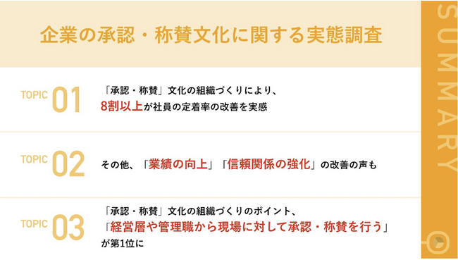 ~「褒め合う仕組み」を作る上で重要なポイントは「経営層や管理職から現場に対しての承認・称賛」~