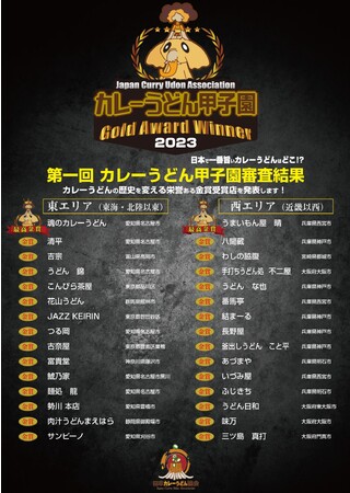 日本カレーうどん協会(兵庫県西宮市、理事長山根さだと)は、インターネット投票「第1回 カレーうどん甲子園」を行い、最高金賞店2店舗、金賞受賞店28店舗が決定しましたので発表いたします。