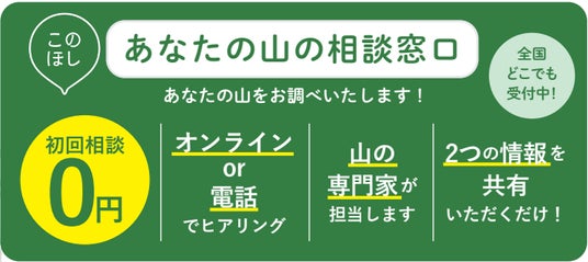 森林資源を活用した事業創造に取り組む株式会社このほし(本社:秋田県五城目町、代表取締役:小原祥嵩、以下、「このほし」)は、相続などで山主となったものの所有する資産の活用方法に困っている方向けのサービス「あなたの山の相談窓口(https://konohoshi.net/service/s-diagnosis/)」を開始いたしました。家族代々受け継いできた山をより良い方法で活用したいという声に応えます。また、本事業により放置林の増加に歯止めをかけ、日本の豊かな森林資源が今後も適切に人の手が入る社会を実現します。