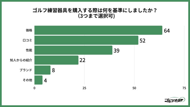 【質問2】ゴルフ練習器具を購入する際は何を基準にされましたか?(3つまで選択可)