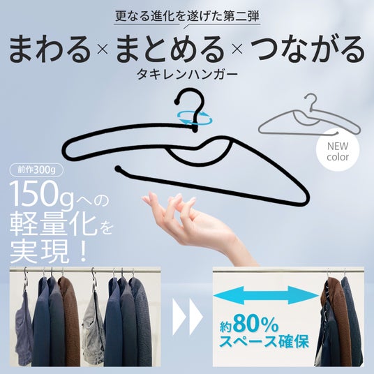 「こんなのがあったらいいな」をカタチでお届けする運営会社、NWorld - エヌワールド(本社:滋賀県湖南市、代表:奈良和哉、以下NWorld )は、2024年8月8日(木)よりクラウドファンディングサイトMakuakeにて、シリーズ累計3000本突破のクローゼットの救世主「タキレンハンガー」の第二弾のプロジェクトを開始いたしました。