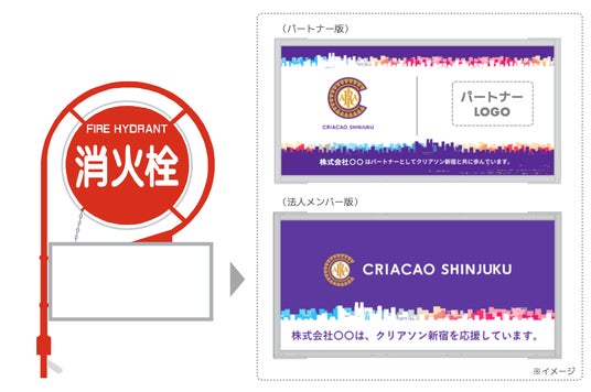 具体的には、クリアソン新宿のエンブレムと共にパートナー企業のロゴもしくは名称を載せたコラボ看板を作成し設置いたします。