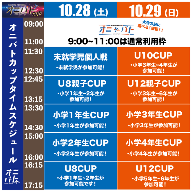 当日の午前中は練習など遊んで頂けるように通常枠として解放しております!