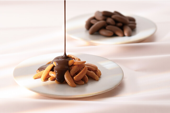 さまざまな用途に便利な4種類のサイズ展開。柿の種をチョコレートで包んだ甘辛な味わいでスイートとビターの2種をご用意しました。