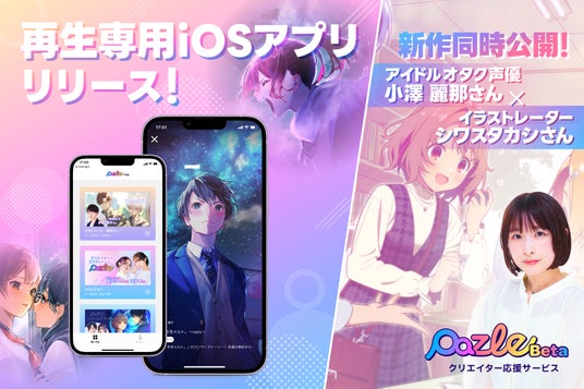 VECTOR合同会社(本社:東京都港区、代表社員:吉野直樹)は、異業種間のコラボレーションを促進するクリエイター支援サービス『PAZLE(パズル)』の再生専用iOSアプリをリリースしました。PAZLEで展開される音声とイラストで楽しむことができる独自のボイスドラマをより身近でお楽しみいただけます。