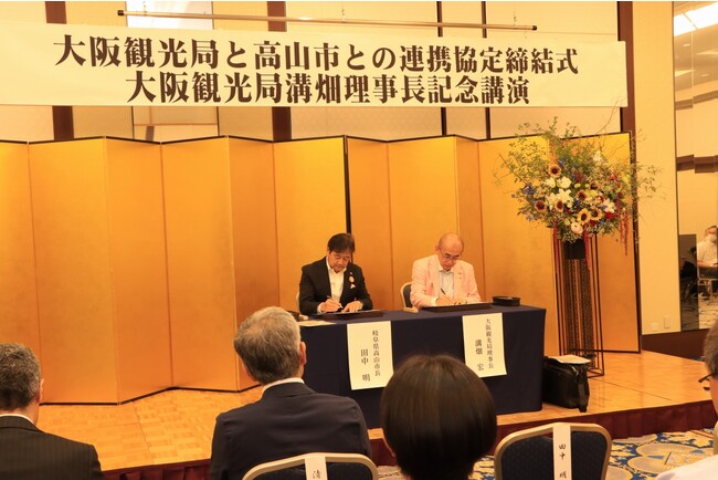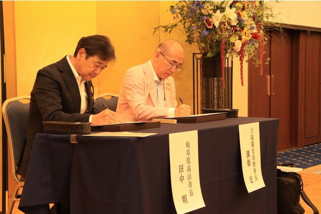 令和5年7月27日、高山市内にて、公益財団法人大阪観光局(所在地:大阪市中央区)と高山市との連携協定締結式が開催されました。
