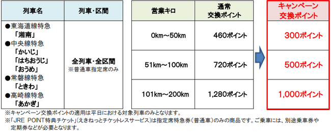 2 キャンペーン対象列車・区間、および交換ポイント数