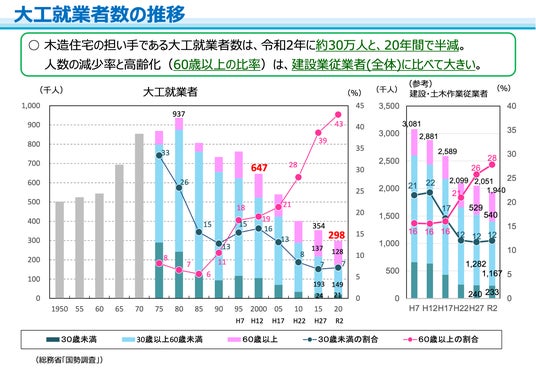 20年間で30万人に半減した大工就業者の担い手不足解消へ