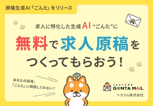 人材採用支援事業を行うトラコム株式会社(Indeedプラチナムパートナー)はこの度、求人原稿の作成に特化した生成AIごんたをリリースしました。ごんたは採用の効果につながる求人原稿を無料で作成します。