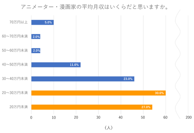 ■一方2人に1人がアニメーター・漫画家の平均月収は30万円以下と予想。