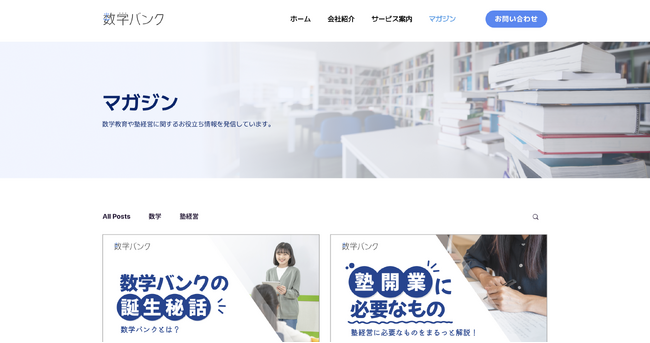 数学教育支援システム『数学バンク』がユーザーの皆様へのお役立ち情報や数学に関する読み物を掲載する「マガジン」ページを開設。