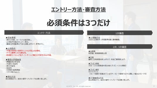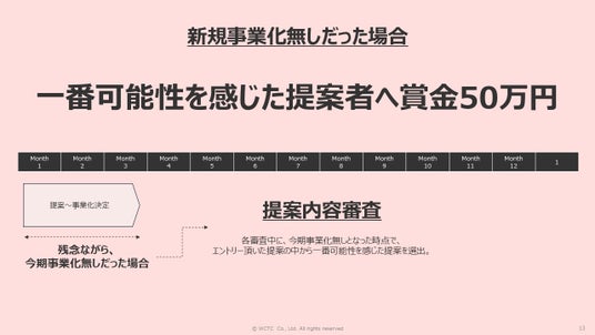 最も可能性があると評価された提案者に対して賞金50万円を支給。
