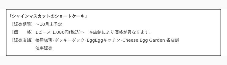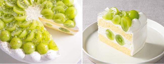 大きく実ったジューシーなシャインマスカット、口どけのよい上品な生クリーム、ふんわりとしたスポンジが奏でる旬の味わいです。
