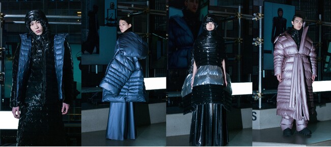 先日のAW2024 Paris Fashion Week(R)でお披露目したばかりのランウェイ・ルックのモデル・プレゼンテーションを日本国内で初披露した他、SS2024コレクションの展示など、RAINS独自のアプローチが光る世界観を表現しました。