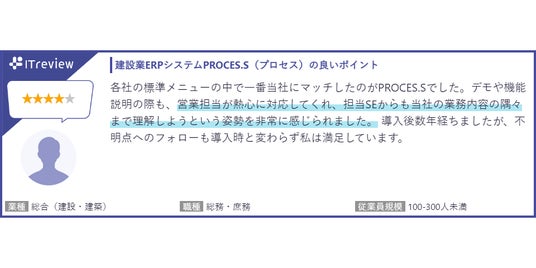 建設業ERPシステム「PROCES.S(プロセス)」のレビューページはこちらです。