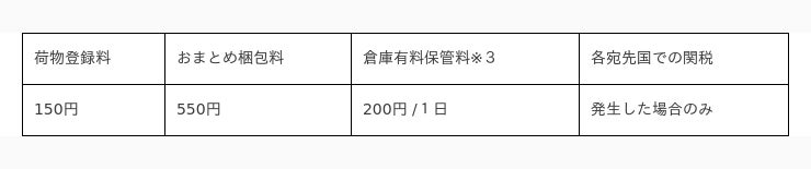 ※2この他に、購入した商品の倉庫までの配送料、日本から海外への配送料、各宛先国での関税(発生した場合)がかかります。