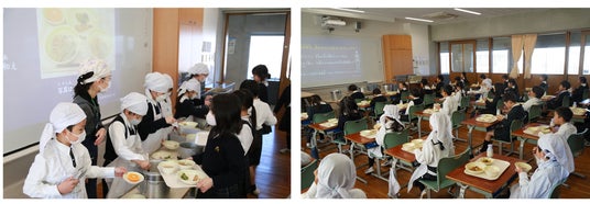 食育として位置付けられている学校給食の時間を楽しむ生徒のみなさん