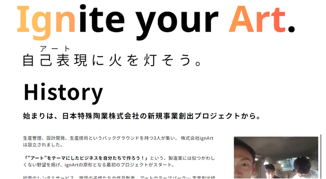 株式会社ignArtは9月25日に自社ホームページを一新し、日本特殊陶業株式会社の新規事業創出プロジェクトから子会社化に至るまでの、創業メンバーの思い、試行錯誤の経緯などのストーリーを公開しました。