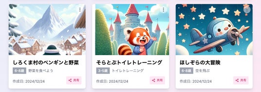 AIがこれらの情報をもとにストーリーとイラストを自動生成し、たった数分で絵本が完成します。 今すぐ公式サイトで体験してください!