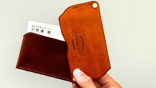 私自身が、元々他業種の営業職を行なっていました。そんな中で名刺を渡すタイミングは1度しかないなと感じ、そこでいかに相手に印象を残せるか。ということを考え抜き、回る名刺?これだと相手に見たことない名刺入れだ!と思いインパクトを与えられるのでないかと思いました。回る名刺入れって今までの取引先様でも使っている人を見たことがなかったので、制作しようと決心しました。私が本革製品がとっても好きで、さまざまなブランドの革製品を使ってきました。そんな中で選んだのは「プエブロ」最高級のレザーです。和紙の様な風合いとヴィンテージな風合いがとても私の好きな革でした。初対面でいかに相手に印象をつけることができるかを試行錯誤しながら制作までに至りました。この名刺を使えば、あなたも初対面の相手にも覚えてもらうことがきっとできるはずです!是非、ちょっと変わったデザインの名刺入れをお手にとってもらえると嬉しく思います!!