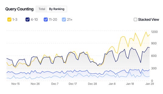 Googleサーチコンソールの値をSEO Getsというツールで可視化。1~3位までのランクインキーワードが顕著に増えています。