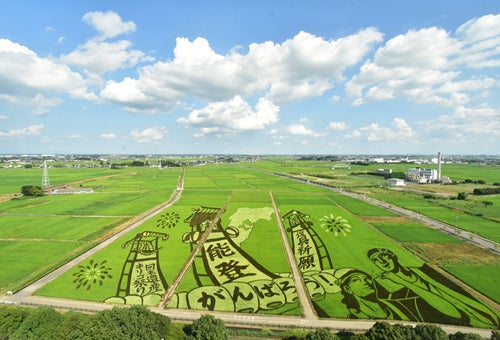 行田タワーから見ることができる「田んぼアート」の様子