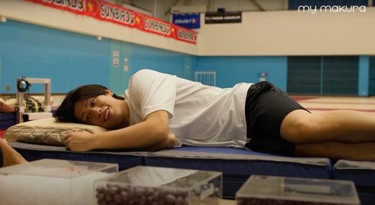 自社開発し特許を取得した「マイまくら全身測定機」により、サントリーサンバーズ全選手の身体に合う枕・マットレスを精密に分析。