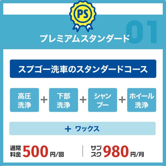 SPLASH’N’GO! では、お客様のニーズに合わせた料金プランをご用意しております。一回ごとのご利用に最適な「プレミアムスタンダード」(1回500円)と、洗車し放題の「サブスクプラン」(月額980円)です。サブスクプランでは、プレミアムスタンダードの洗車コースを、月額一定料金で何度でもご利用いただけます。忙しい毎日の中で、愛車を手軽に、綺麗に保ちたいとお考えの方は、ぜひこの機会にお得で便利なサブスクプランをご利用ください。