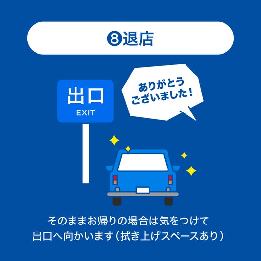 純水洗車なので、水滴跡や水シミが残りにくく、拭き取り作業が不要に。洗車後の時間を有効活用できます。
