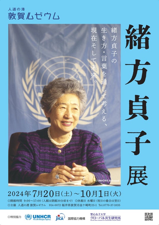 本企画展では、国連難民高等弁務官事務所(UNHCR)、国際協力機構(JICA)及び聖心女子大学グローバル共生研究所の協力のもと、パネルや映像により緒方さんの生き方や、現代を生きる私たちの指針となるような数々の言葉を紹介するだけでなく、今も世界各地で起こっている紛争や迫害に伴う難民問題等についても取り上げます。展示を通して、来場された方々に当館のコンセプトとしている「命の大切さと平和の尊さ」について再認識していただくとともに、今、私たちにできることは何かについて考えていただくきっかけとなるような展示としています。