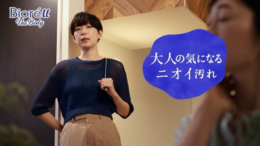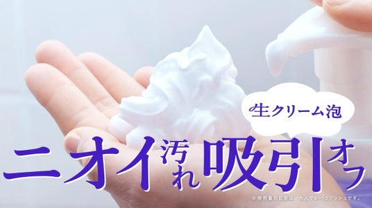 WEBCMは、「大人の気になるニオイ汚れ」シリーズとして3本公開。江口のりこさんが、年齢や季節性によるさまざまな大人のニオイ悩みを持つ友人に対して、「それならニオイの原因から洗い流しちゃえばいいの!」と提案を行います。後半では実際に濃密な「ニオイ汚れ吸引オフ生クリーム泡」で、ニオイが気になる部位を気持ちよく洗い流す様子を描いています。